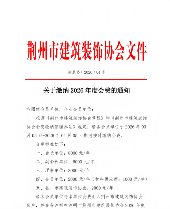 关于缴纳2026年度会费的通知